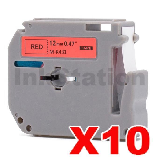 10 x Brother M-K431 Compatible 12mm Black Text on Red Tape – 8 meters
