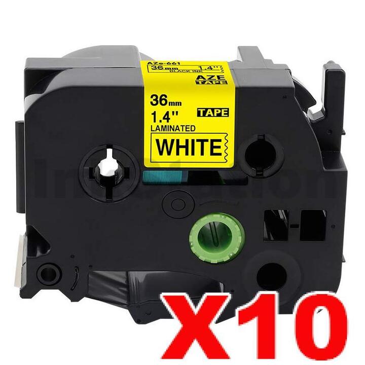 10 x Brother TZe-661 Compatible 36mm Black Text on Yellow Laminated Tape – 8 meters