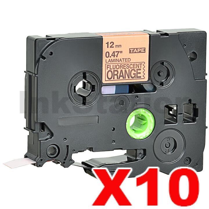 10 x Brother TZe-B31 Compatible 12mm Black Text on Orange Fluorescent Laminated Tape – 5 meters