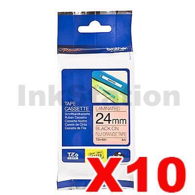 10 x Brother TZe-B51 Genuine 24mm Black Text on Orange Fluorescent Tape – 5 meters