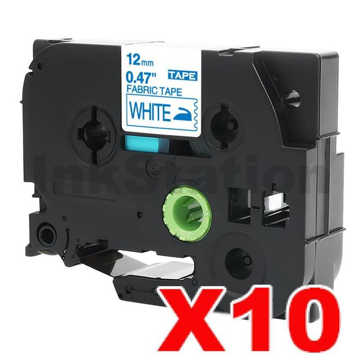 10 x Brother TZe-FA3 Compatible 12mm Blue Text on White Fabric Tape – 3 meters