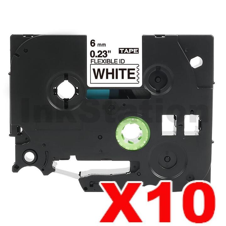 10 x Brother TZe-FX211 Compatible 6mm Black Text on White Flexible ID Laminated Tape – 8 metres