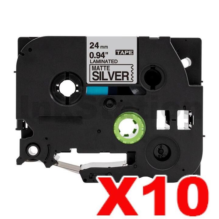 10 x Brother TZe-M951 Compatible 24mm Black Text on Matt Silver Laminated Tape – 8 metres