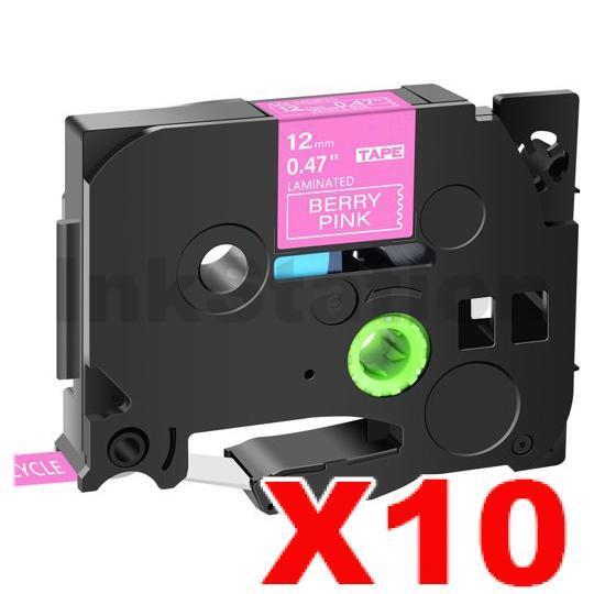 10 x Brother TZe-MQP35 Compatible 12mm White Text on Berry Pink Laminated Tape – 5 metres