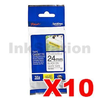 10 x Brother TZe-S251 Genuine 24mm Black Text on White Strong Adhesive Laminated Tape – 8 metres