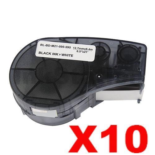 10 x Compatible Brady M21-500-595-WT Black on White Vinyl Label Tape 12.7mm x 6.4m