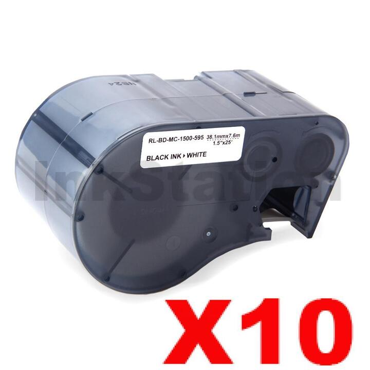 10 x Compatible Brady MC-1500-595-WT-BK Black on White Vinyl Label Tape 38.1mm x 7.6m