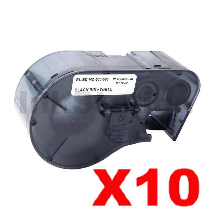 10 x Compatible Brady MC-500-595-WT-BK Black on White Vinyl Label Tape 12.7mm x 7.6m