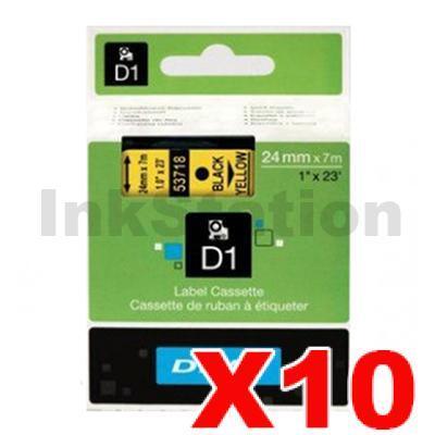 10 x Dymo D1 SD53718 / S0720980 Genuine 24mm Black Text on Yellow Label Cassette – 7 meters