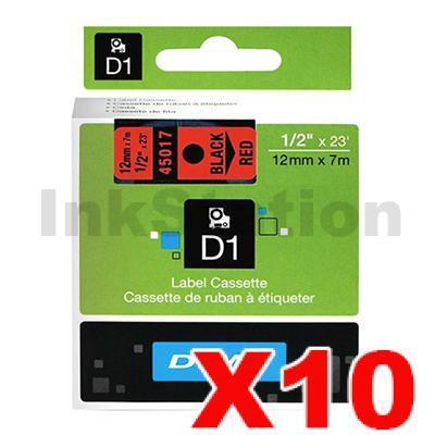 10 x Dymo SD45017 / S0720570 Genuine 12mm Black Text on Red Label Cassette – 7 meters