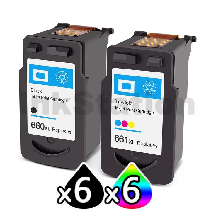 12-Pack Canon PG-660XL CL-661XL Compatible High Yield Ink Cartridges Combo [6Black + 6Colour]