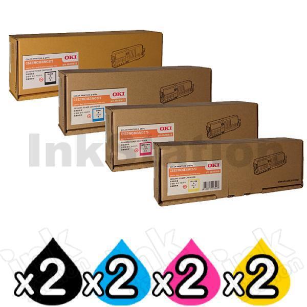 2 Sets of 4 Pack OKI C532DN / MC573DN Genuine Toner Combo (46490612-46490609)