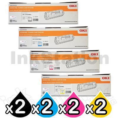 2 Sets of 4 Pack OKI C833N Genuine Toner Combo (46443108-46443105)