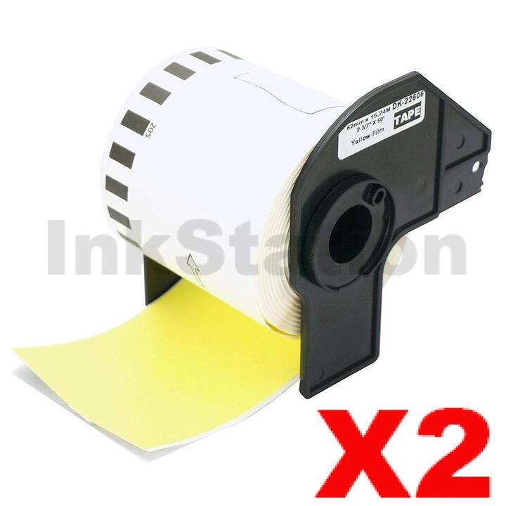 2 x Brother DK-22606 Compatible Black Text on Yellow Continuous Film Label Roll 62mm x 15.24m