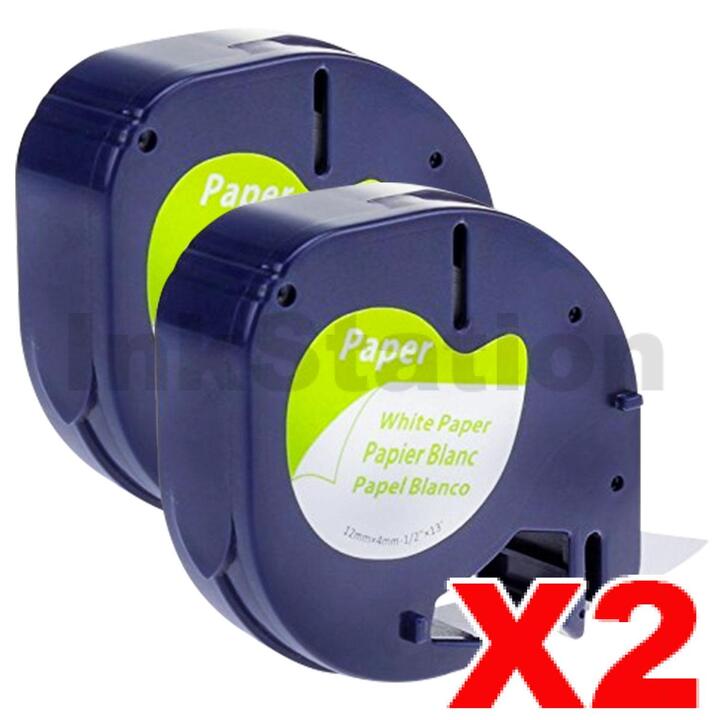 2 x Dymo SD92630 / 10697 Compatible 12mm x 4m Black On White LetraTag Paper Tape (Twin Pack of 91200)