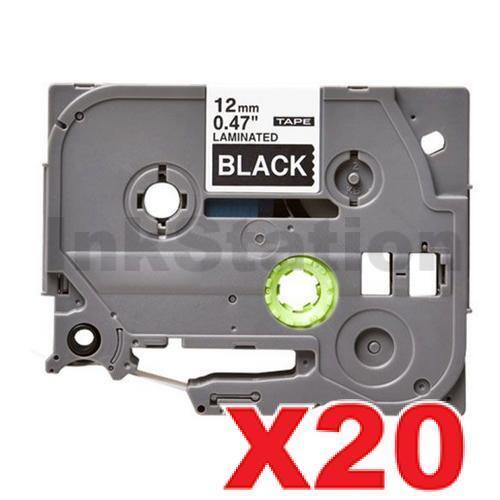 20 x Brother TZe-335 Compatible 12mm White Text on Black Laminated Tape – 8 meters