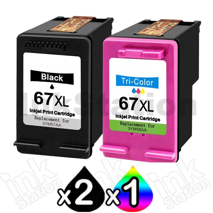 3 Pack HP 67XL Compatible High Yield Inkjet Cartridges 3YM57AA + 3YM58AA [2BK,1CL]