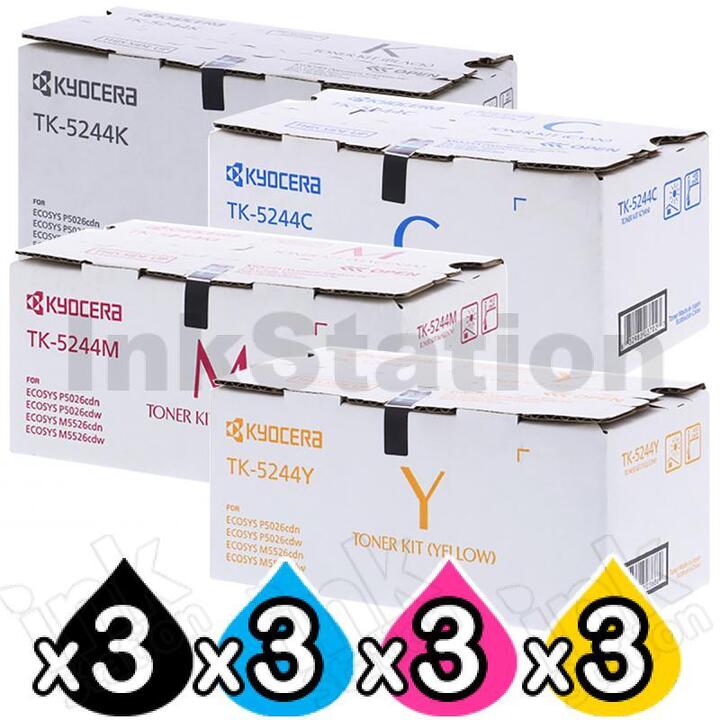 3 sets of 4 Pack Genuine Kyocera TK-5244 Toner Combo Ecosys M5526, P5026 [3BK,3C,3M,3Y]