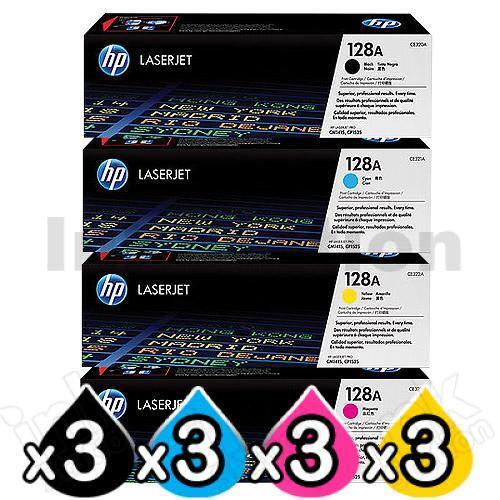 3 sets of 4 Pack HP CE320A-CE323A (128A) Genuine Toner Cartridges [3BK,3C,3M,3Y]
