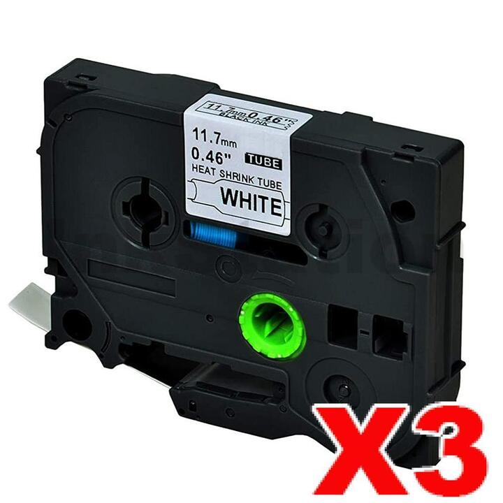 3 x Brother HSe-231 Compatible 11.7mm Black Text on White Heat Shrink Tube Tape – 1.5 meters