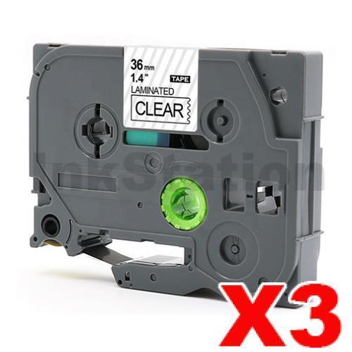 3 x Brother TZe-161 Compatible 36mm Black Text on Clear Laminated Tape – 8 meters