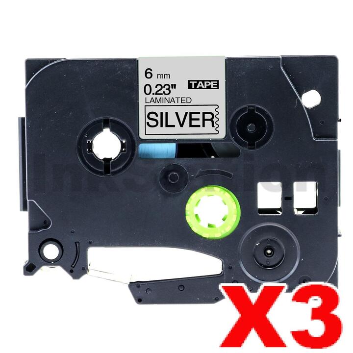 3 x Brother TZe-911 Compatible 6mm Black Text on Silver Laminated Tape – 8 meters