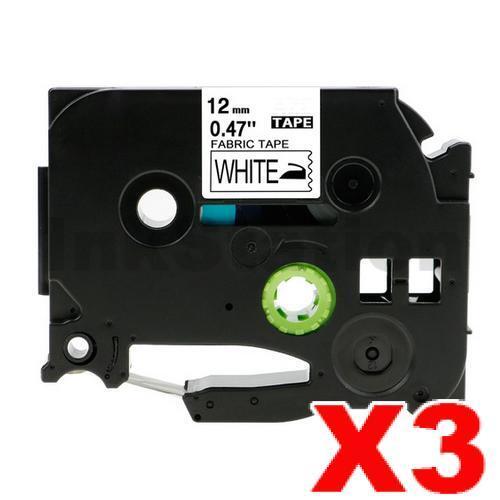 3 x Brother TZe-FA231 Compatible 12mm Black Text on White Fabric Tape – 3 meters