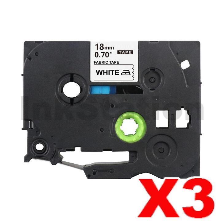 3 x Brother TZe-FA241 Compatible 18mm Black Text on White Fabric Tape – 3 meters