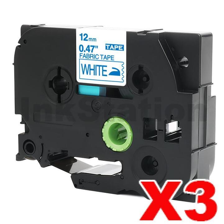 3 x Brother TZe-FA3 Compatible 12mm Blue Text on White Fabric Tape – 3 meters