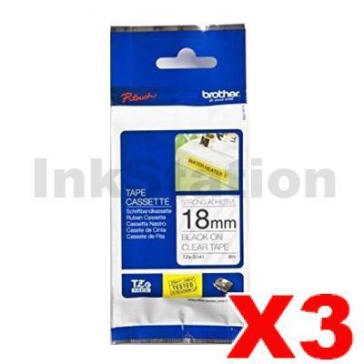 3 x Brother TZe-S141 Genuine 18mm Black Text on Clear Strong Adhesive Laminated Tape – 8 metres