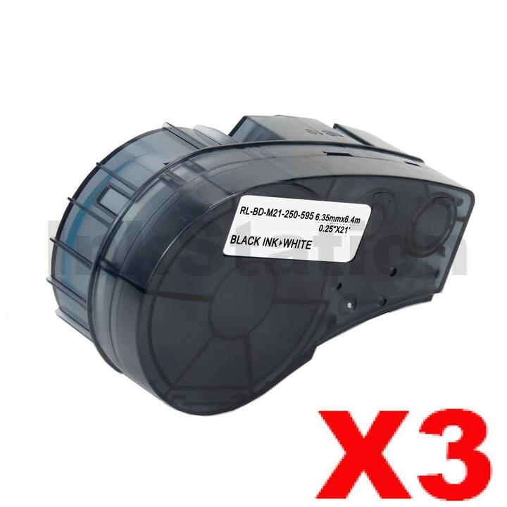 3 x Compatible Brady M21-250-595-WT Black on White Vinyl Label Tape 6.35mm x 6.4m