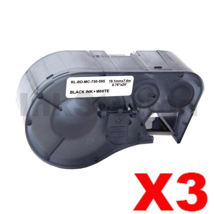 3 x Compatible Brady MC-750-595-WT-BK Black on White Vinyl Label Tape 19.1mm x 7.6m
