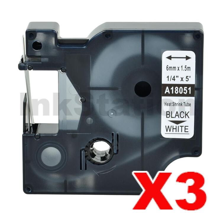 3 x Dymo SD18051 Compatible 6mm Black Text on White Heat-Shrink Tube Industrial Rhino Label Cassette – 1.5 meters