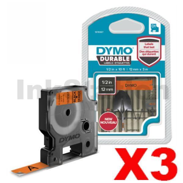 3 x Dymo SD1978367 Genuine 12mm x 3m Black On Orange D1 Durable Label Tape