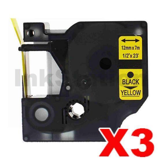 3 x Dymo SD45018 / S0720580 Compatible 12mm Black Text on Yellow Label Cassette – 7 meters