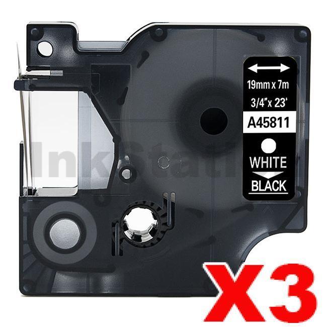 3 x Dymo SD45811 / S0720910 Compatible 19mm White Text on Black Label Cassette – 7 meters