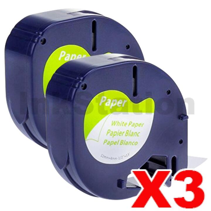3 x Dymo SD92630 / 10697 Compatible 12mm x 4m Black On White LetraTag Paper Tape (Twin Pack of 91200)