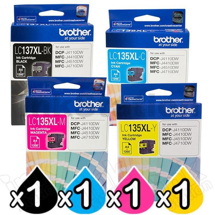 4 Pack Genuine Brother LC-137XL/LC-135XL High Yield Ink Combo [1BK+1C+1M+1Y]