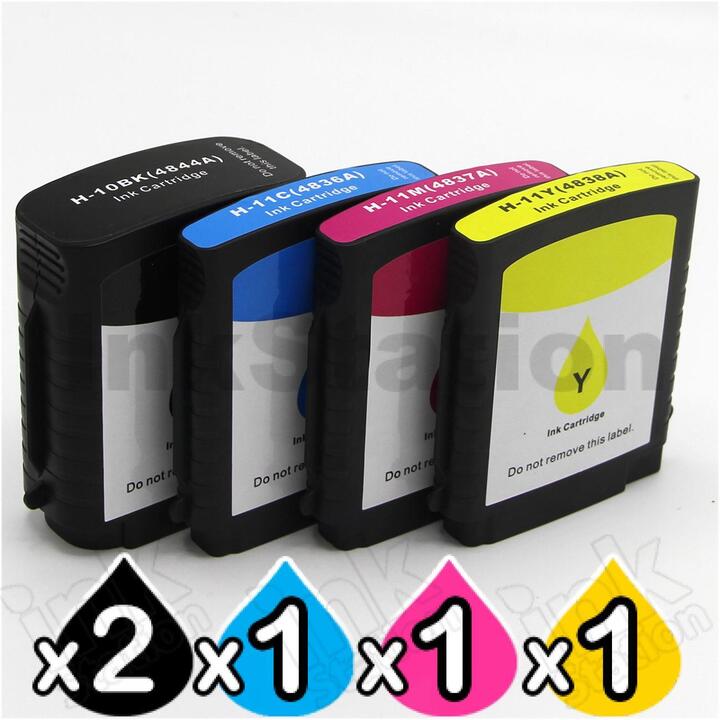 5 Pack HP 10 + 11 Compatible Inkjet Cartridges C4844AA+C4836AA-C4838AA [2BK,1C,1M,1Y]