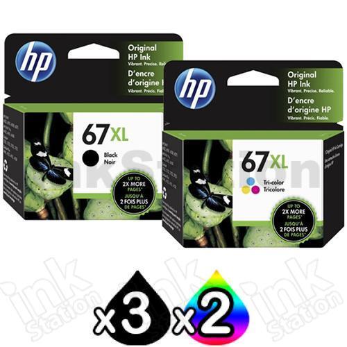 5 Pack HP 67XL Genuine High Yield Inkjet Cartridges 3YM57AA + 3YM58AA [3BK,2CL]