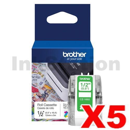 5 x Brother CZ-1002 Genuine Full Colour Continuous Paper Label Roll Cassette 12mm x 5m