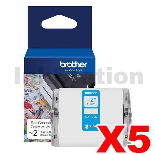 5 x Brother CZ-1005 Genuine Full Colour Continuous Paper Label Roll Cassette 50mm x 5m