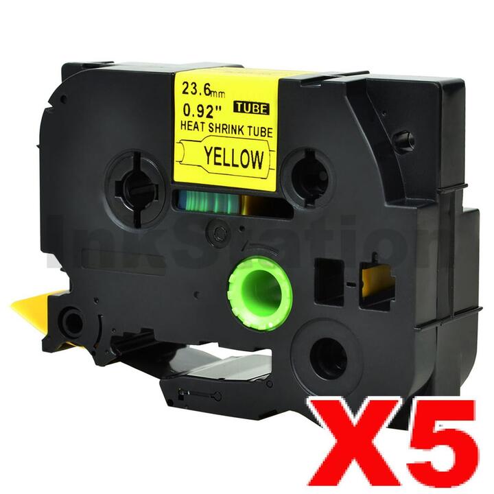 5 x Brother HSe-651 Compatible 23.6mm Black Text on Yellow Heat Shrink Tube Tape – 1.5 meters