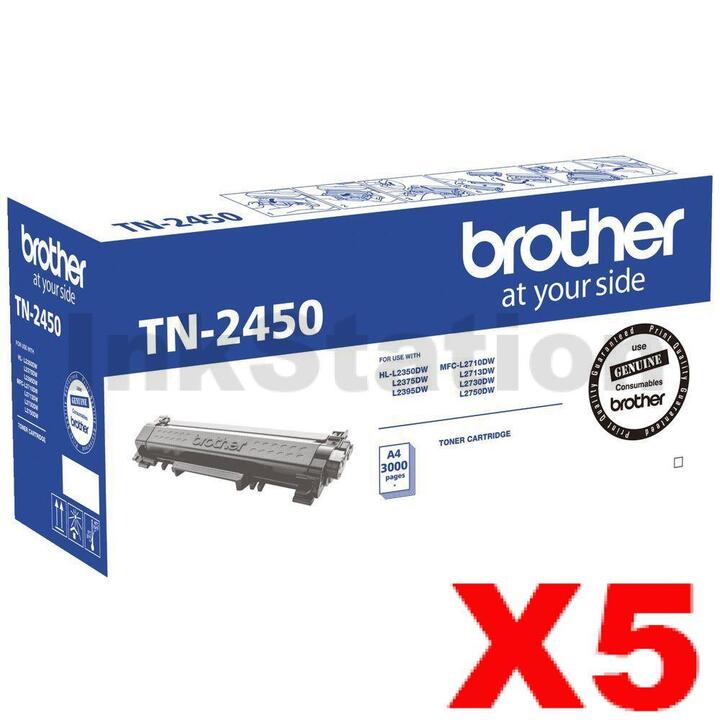 5 x Brother TN-2450 High Yield Genuine Toner Cartridge – 3,000 pages