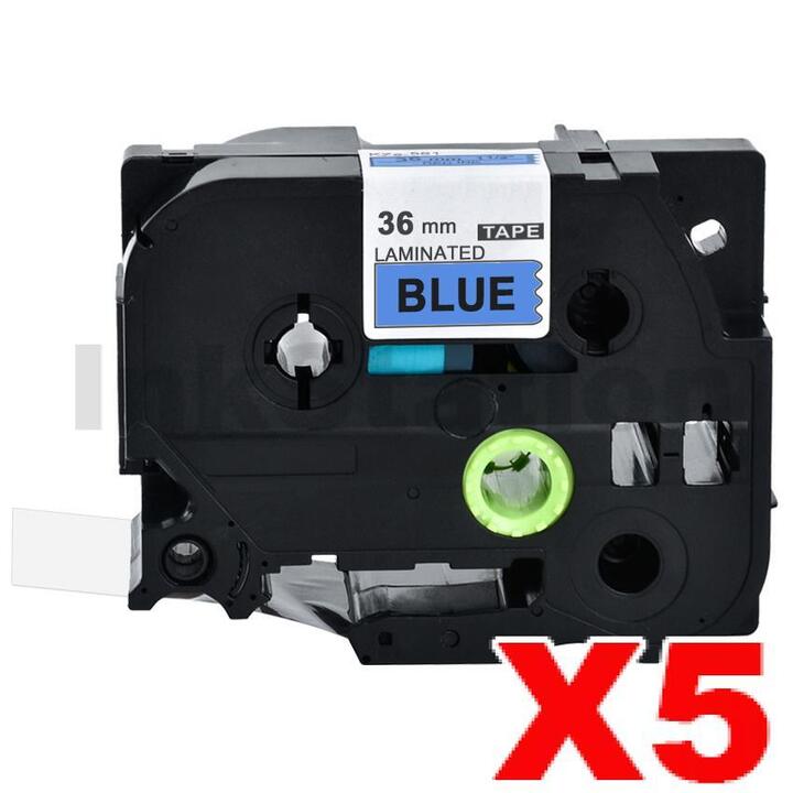 5 x Brother TZe-561 Compatible 36mm Black Text on Blue Laminated Tape – 8 metres