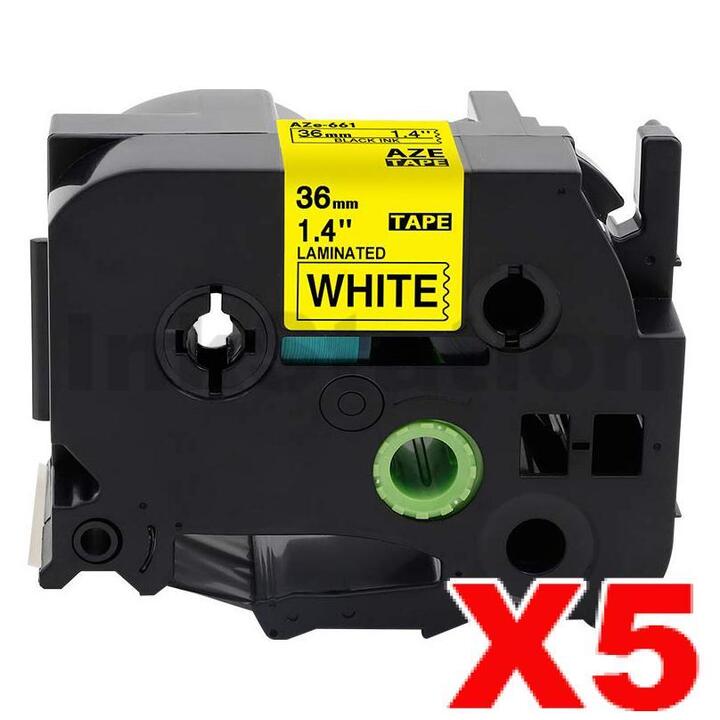 5 x Brother TZe-661 Compatible 36mm Black Text on Yellow Laminated Tape – 8 meters