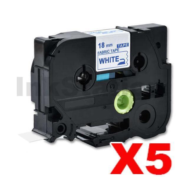 5 x Brother TZe-FA4 Compatible 18mm Blue Text on White Fabric Tape – 3 meters