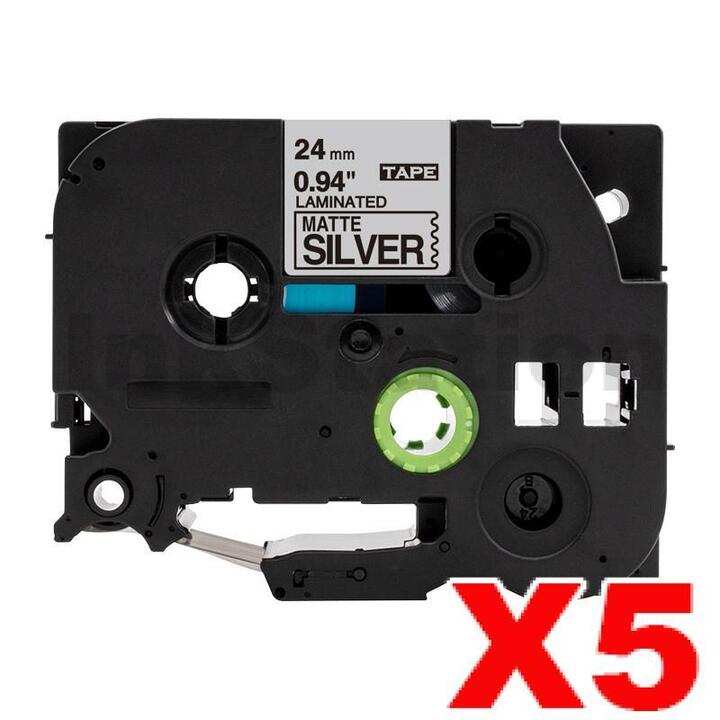 5 x Brother TZe-M951 Compatible 24mm Black Text on Matt Silver Laminated Tape – 8 metres