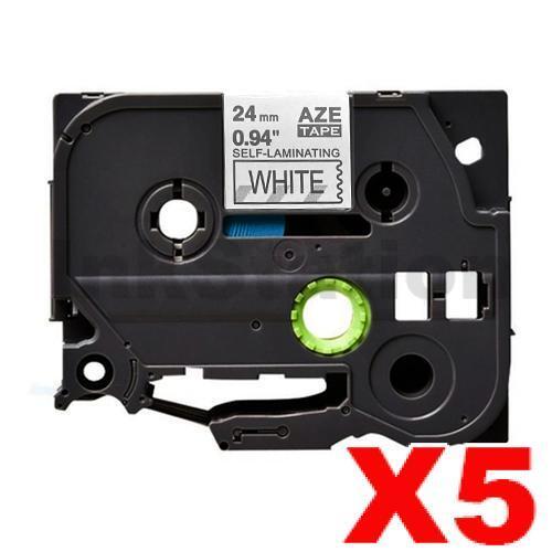 5 x Brother TZe-SL251 Compatible 24mm Black Text on White Self-Laminating Label for Cables and Wires – 8 metres