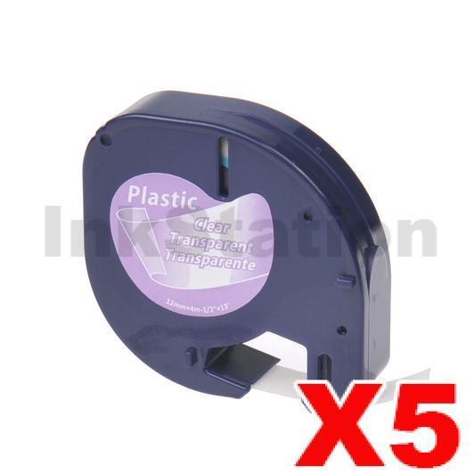 5 x Dymo SD12267 / 16952 Compatible 12mm x 4m Black On Clear Plastic Tape